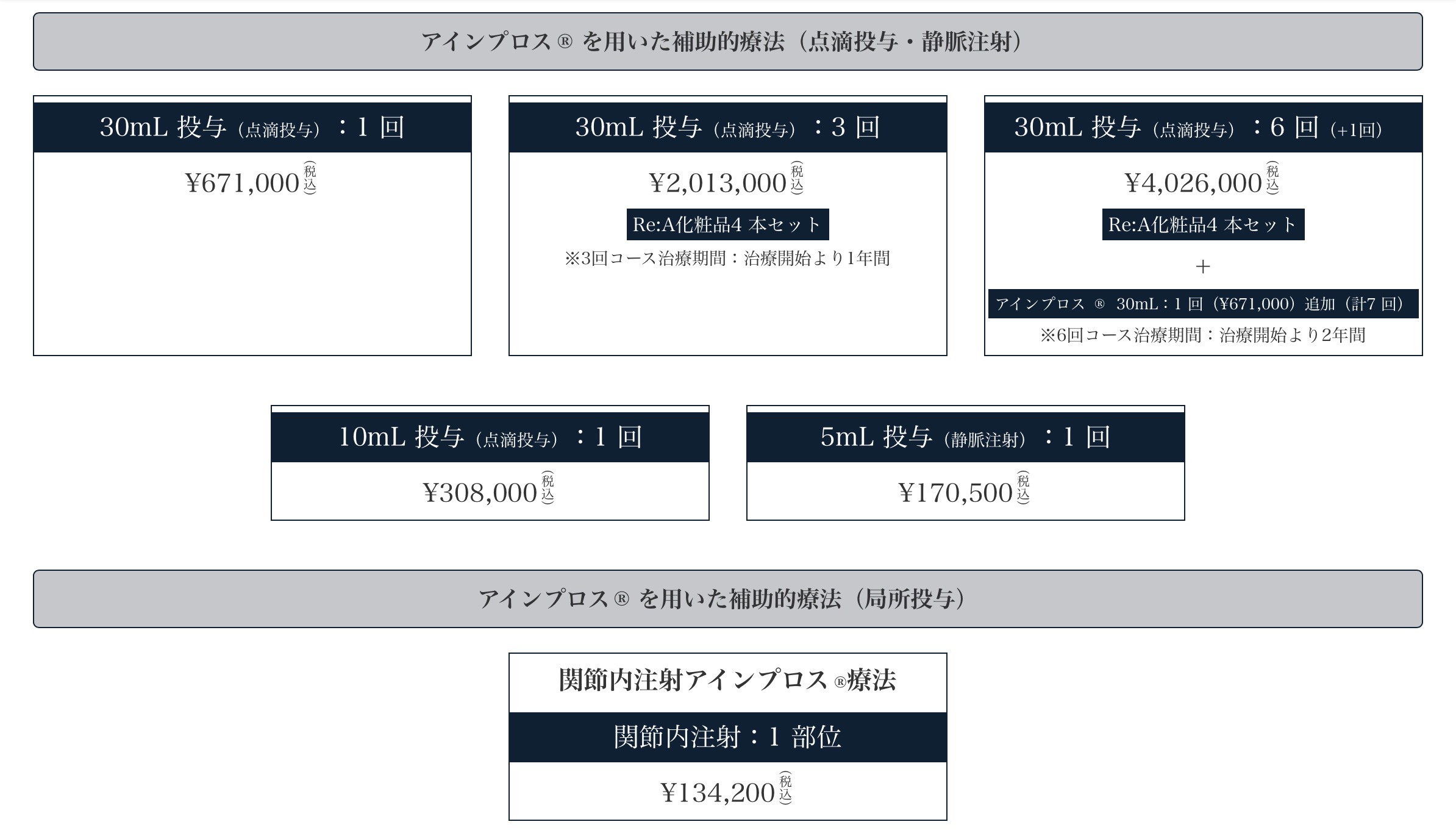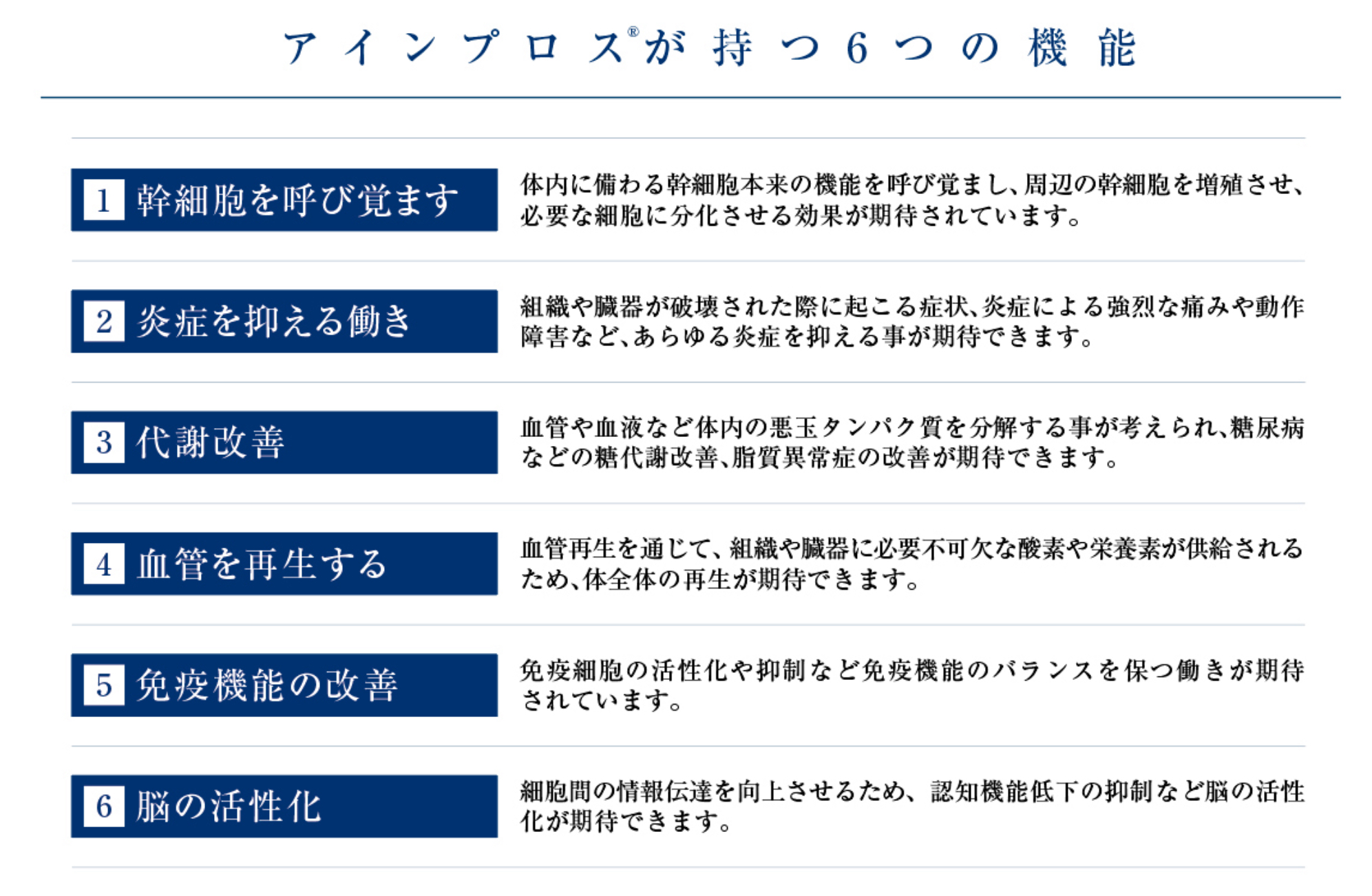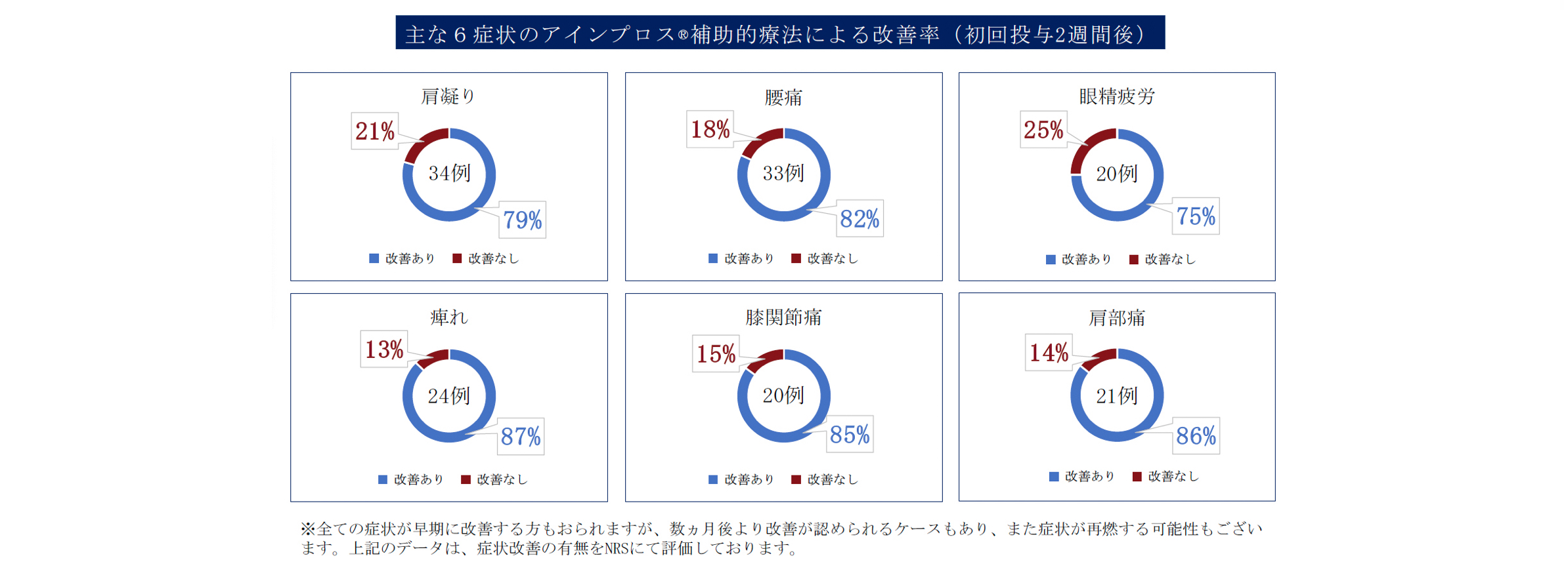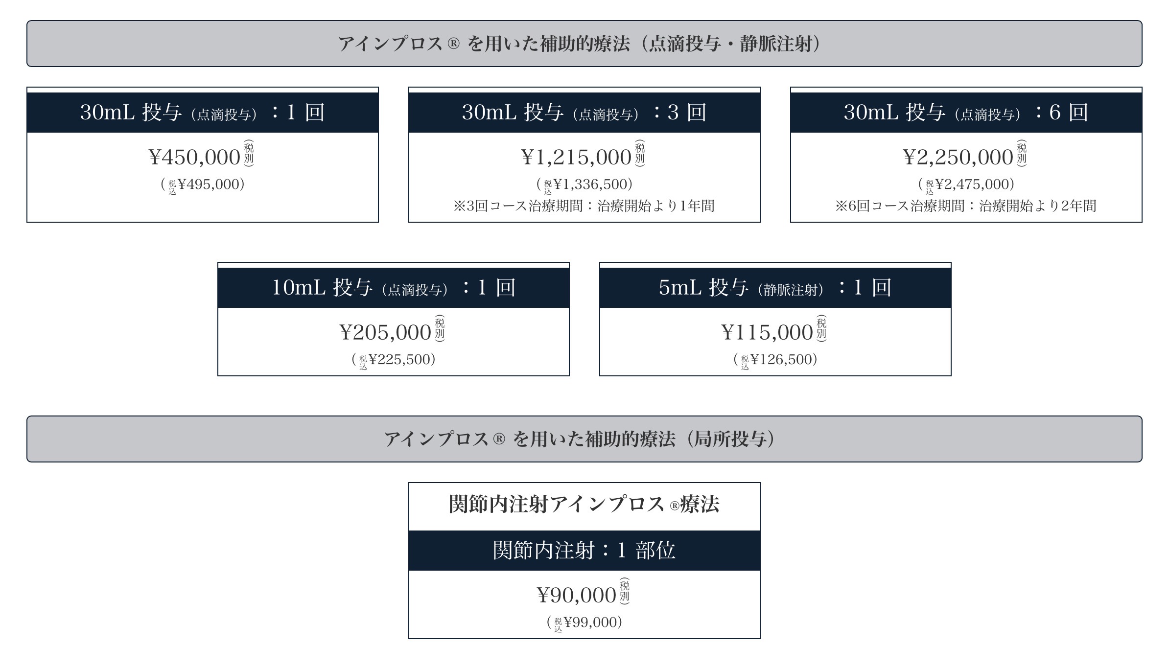 ※「アインプロス®補助的療法」は、医療機関・医師の責任の下で医療行為として実施する必要があります。「アインプロス®」自体は、薬機法上の承認を得た医薬品ではありません。